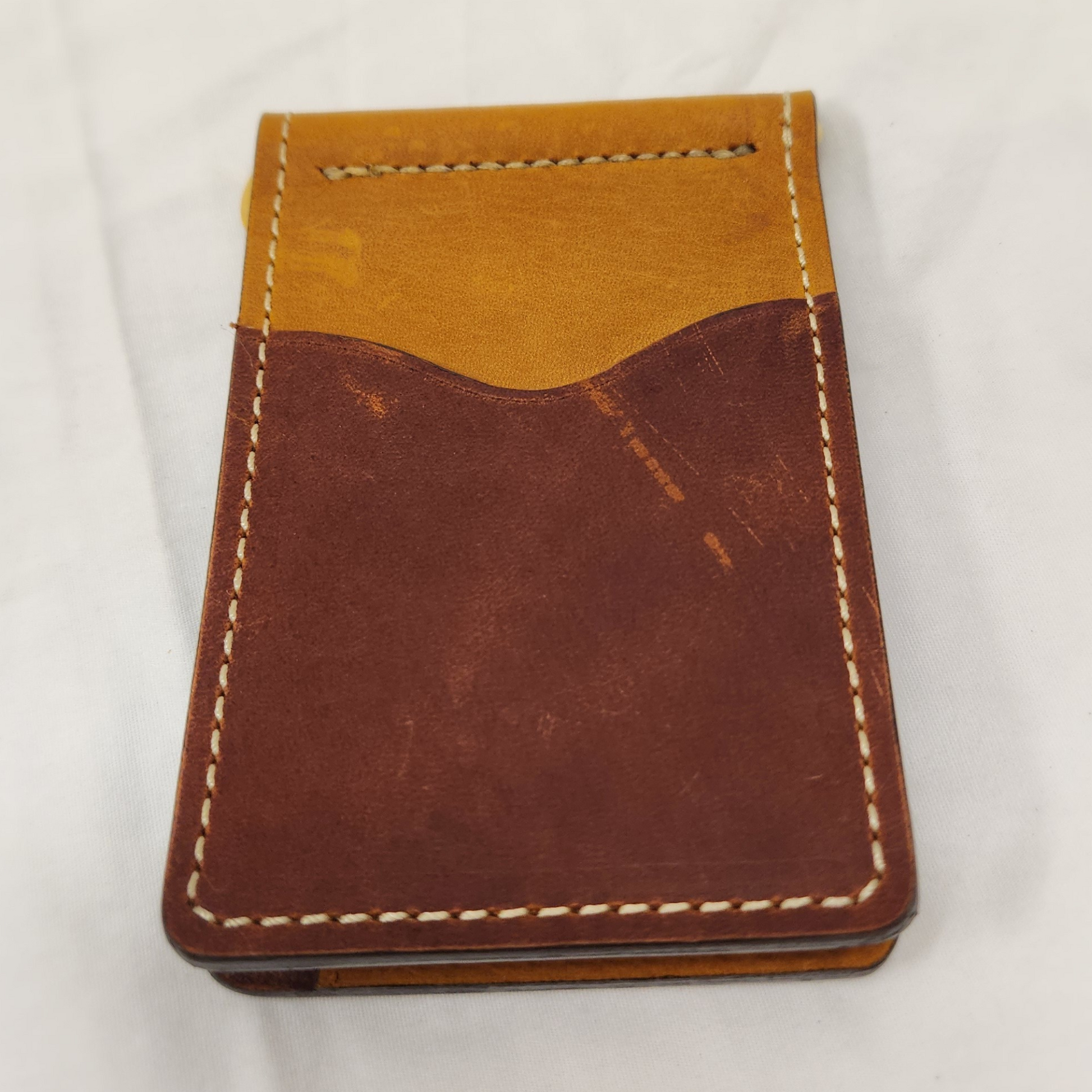 Crafted from durable whole grain leather, this Money Clip with Outside Pockets offers a sleek way to keep your cash and cards organized. Featuring additional inside card slot, it securely holds multiple cards while providing easy access to bills. Perfect for those who value both style and functionality, this accessory ensures you carry plenty without the bulk.